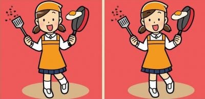 Ambos dibujos muestran a una niña haciendo huevos revueltos. Y parece estar en apuros, porque el huevo frito está a punto de caer al suelo desde la sartén.