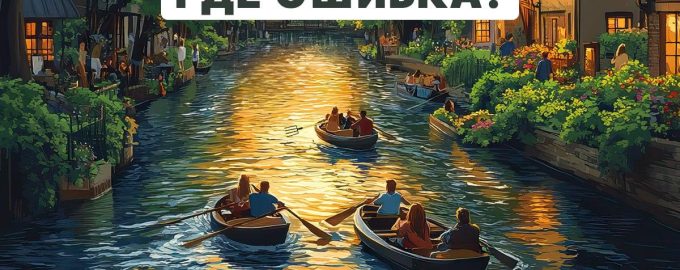 Delante de ti hay un cro que muestra un hermoso paisaje de una ciudad nocturna. Entre las casas corre un río en el que flota gente en barcas. A primera vista, la imagen parece normal, pero en realidad hay un grave error en ella.