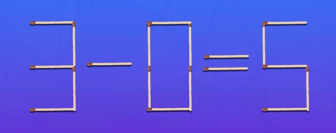 En realidad es bastante simple. Desglosémoslo paso a paso. No tenía sentido añadir una cerilla al signo, porque 3+0 sería ig a 3, y no se puede mover una cerilla de 5.